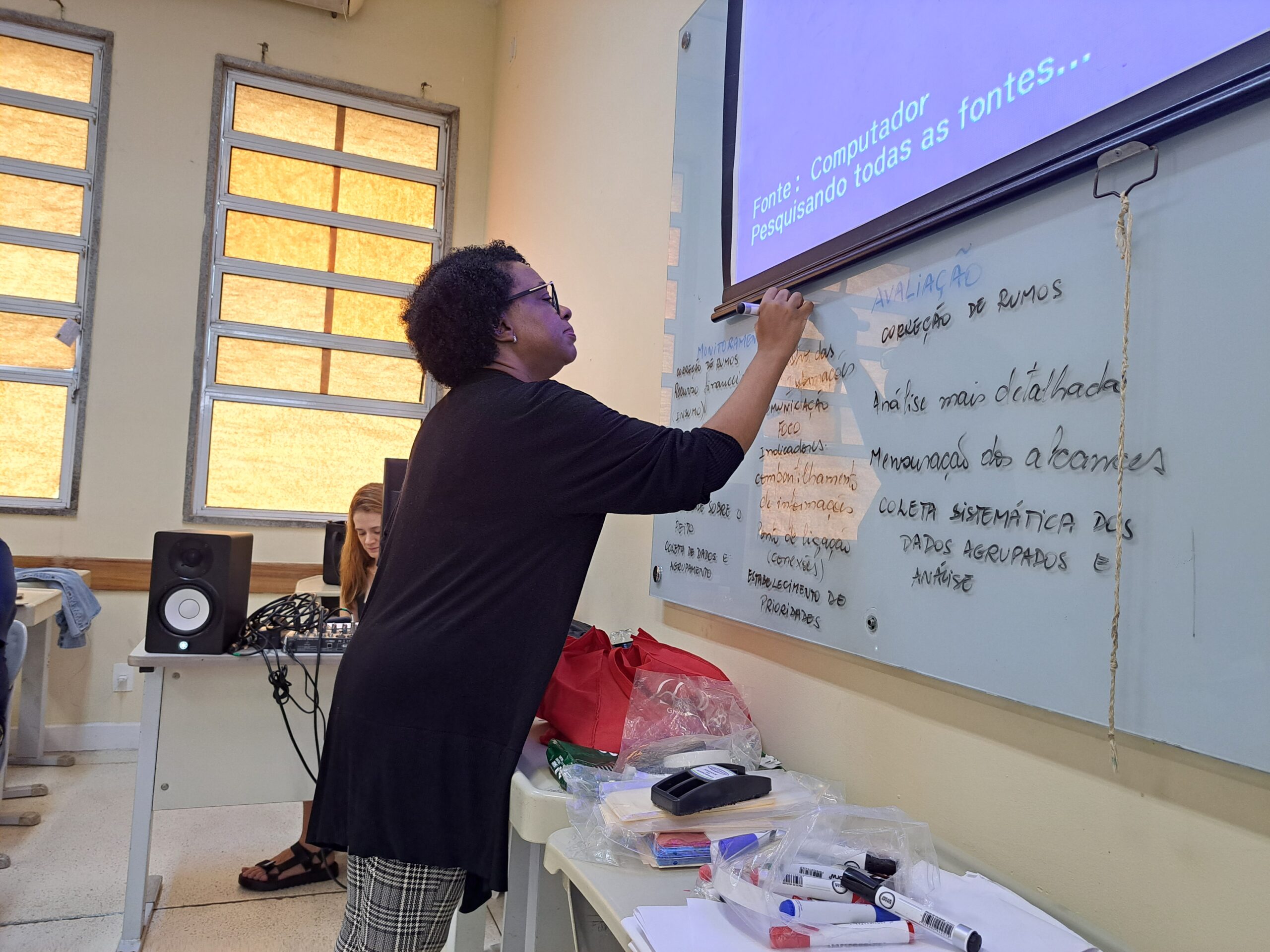Em outubro de 2023, como parte das atividades desse projeto, foi realizada, no Rio de Janeiro, a Oficina de Monitoramento e Avaliação com foco na Rede de Atenção à Saúde dos Povos Indígenas, coordenada pelas professoras-pesquisadoras Angela Casanova (ENSP/FIOCRUZ) e Ana Cristina Reis (EPSJV/Fiocruz). Essa capacitação tinha dois principais objetivos: 1) apresentar conceitos e ferramentas de M&A para a estruturação e o acompanhamento de intervenções no contexto de trabalho dos profissionais; e 2) conselheiros de Saúde Indígena e validar um manual técnico.