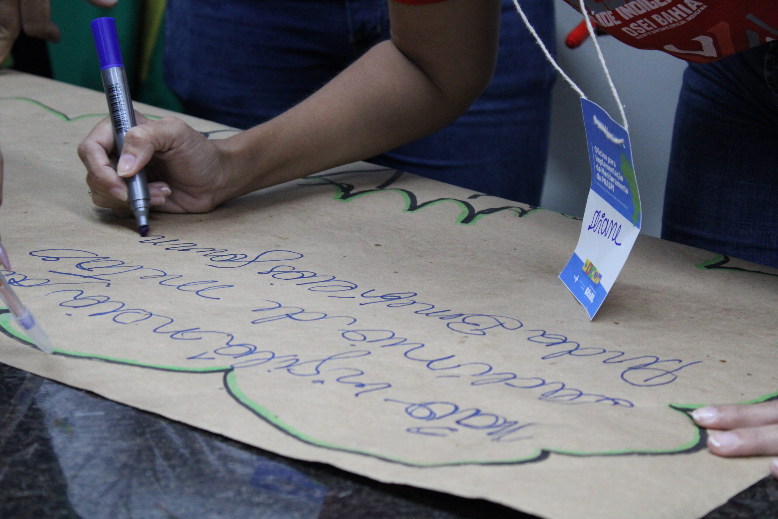 Participante realizando uma atividade da oficina realizada no DSEI Bahia, em dezembro de 2024.